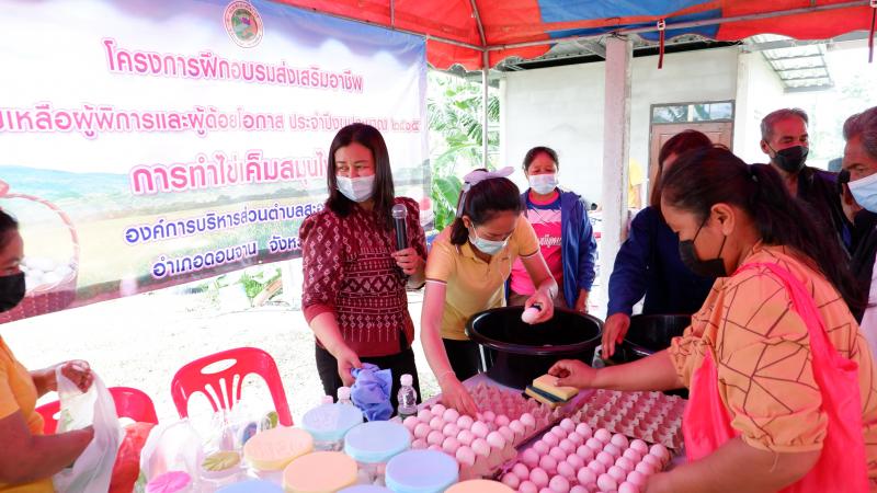 description วันที่ 19 กรกฎาคม 2565 คณะทำงานสนับสนุน และติดตาม การดำเนินงานขจัดความยากจนฯ อำเภอดอนจาน โดยคณะทำงานสนับสนุนและติดตามการขับเคลื่อนการดำเนินงานขจัดความยากจนและพัฒนาคนทุกช่วงวัย อย่างยั่งยืนตามหลักปรัญาของเศรษฐกิจพอเพียง จังหวัดกาฬสินธุ์ ลงพื่นที่เยี่ยมชมกิจกรรมการขับเคลื่อนการดำเนินงานขจัดความยากจนฯ(Best Practice)ตำบลสะอาดไชยศรี จำนวน 2 จุด ได้แก่ 1) ครัวเรือน นางไสว ภารไสว บ้านเลขที่ 85 หมู่ที่ 2 บ้านหนองพอก ตำบลสะอาดไชยศรี 2) แปลงโคก หนอง นา นายทนัน คำกา หมู่ที่ 3 ตำบลสะอาดไชยศรี ในการส่งเสริมให้ความรู้เรื่องการศึกษาในระบบและนอกระบบ และส่งเสริมพัฒนาทักษะในการประกออบอาชีพ "ทำไข่เค็มสมุนไพร" จำนวน 20 ราย โดยมีหัวหน้าเกษตรและสหกรณ์จังหวัดกาฬสินธุ์ ได้ดับมอบหมายจากนายธวัชชัย รอดงาม รองผู้ว่าราชการจังหวัดกาฬสินธุ์ เป็นหัวหน้าคณะทำงาน person admin