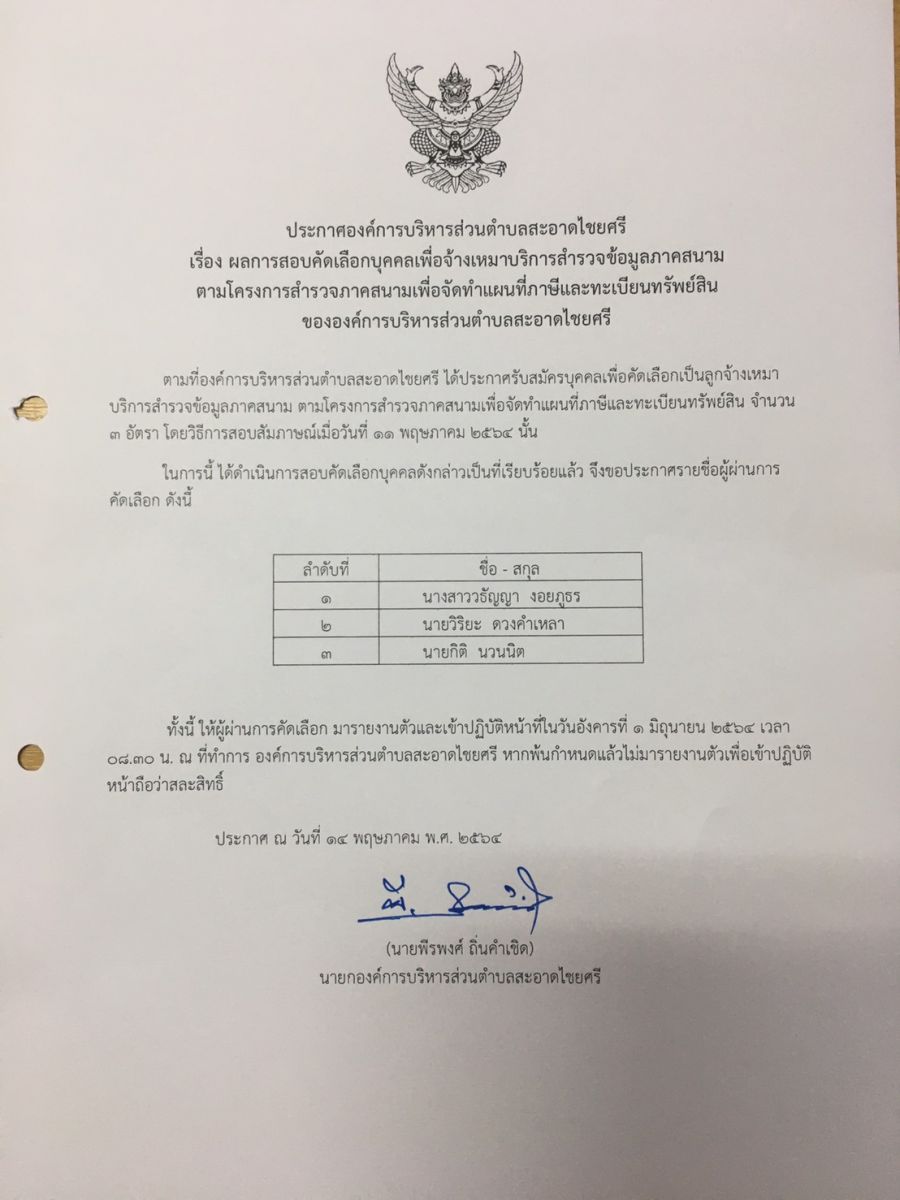 ประกาศ ผลการสอบคัดเลือกบุคคลเพื่อจ้างเหมาบริการฯ