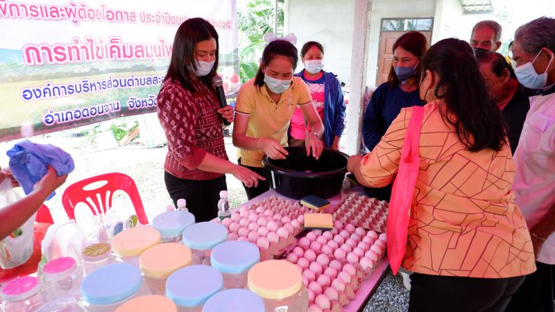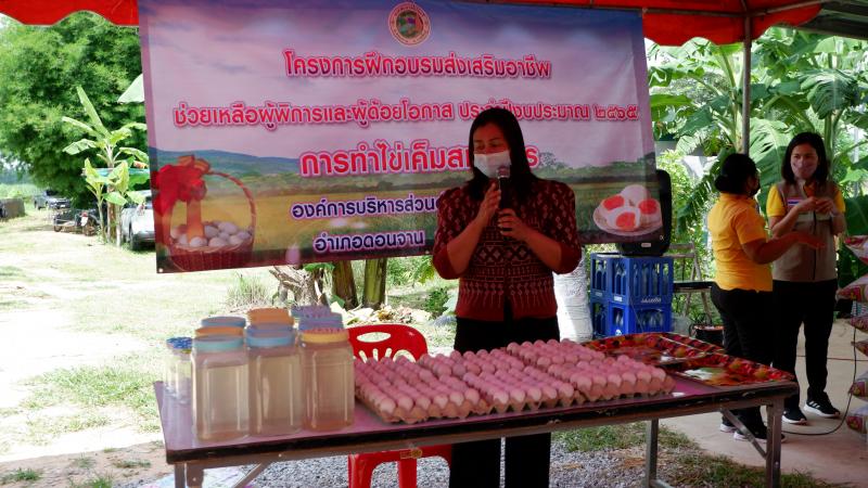 description วันที่ 19 กรกฎาคม 2565 คณะทำงานสนับสนุน และติดตาม การดำเนินงานขจัดความยากจนฯ อำเภอดอนจาน โดยคณะทำงานสนับสนุนและติดตามการขับเคลื่อนการดำเนินงานขจัดความยากจนและพัฒนาคนทุกช่วงวัย อย่างยั่งยืนตามหลักปรัญาของเศรษฐกิจพอเพียง จังหวัดกาฬสินธุ์ ลงพื่นที่เยี่ยมชมกิจกรรมการขับเคลื่อนการดำเนินงานขจัดความยากจนฯ(Best Practice)ตำบลสะอาดไชยศรี จำนวน 2 จุด ได้แก่ 1) ครัวเรือน นางไสว ภารไสว บ้านเลขที่ 85 หมู่ที่ 2 บ้านหนองพอก ตำบลสะอาดไชยศรี 2) แปลงโคก หนอง นา นายทนัน คำกา หมู่ที่ 3 ตำบลสะอาดไชยศรี ในการส่งเสริมให้ความรู้เรื่องการศึกษาในระบบและนอกระบบ และส่งเสริมพัฒนาทักษะในการประกออบอาชีพ "ทำไข่เค็มสมุนไพร" จำนวน 20 ราย โดยมีหัวหน้าเกษตรและสหกรณ์จังหวัดกาฬสินธุ์ ได้ดับมอบหมายจากนายธวัชชัย รอดงาม รองผู้ว่าราชการจังหวัดกาฬสินธุ์ เป็นหัวหน้าคณะทำงาน person admin