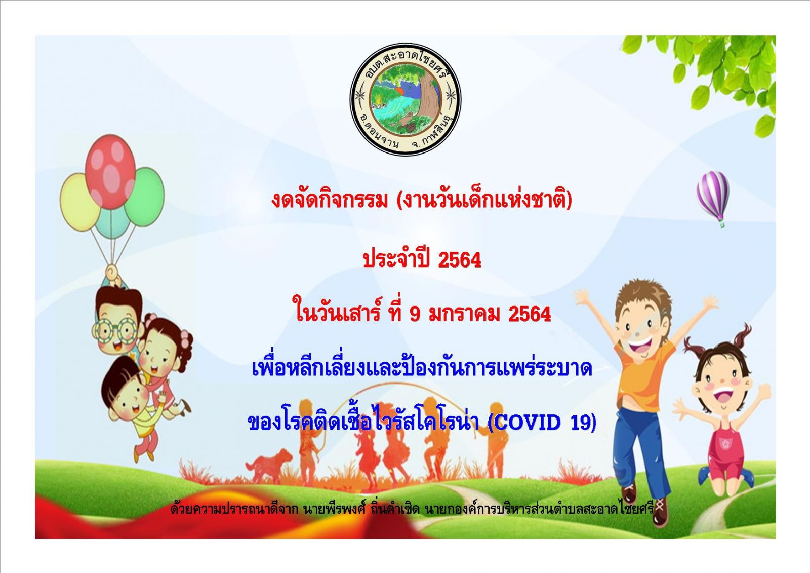 ประกาศ งดจัดกิจกรรม วันเด็กแห่งชาติ 2564