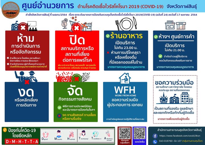 คำสั่งจังหวัดกาฬสินธุ์ ที่ ๒๔๙๖/๒๕๖๔ เรื่อง ยกระดับมาตรการป้องกันควบคุมโรคติดเชื้อไวรัสโคโรนา 2019 (COVID-19) (ฉบับที่ ๒๔) 8 มาตรการที่ต้องร่วมมือกัน