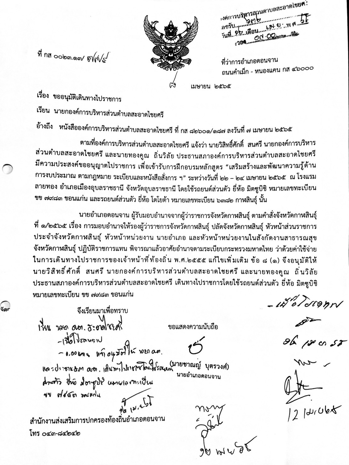 รายงานการเดินทางไปราชการ วันที่ 22 - 24 เมษายน 2565